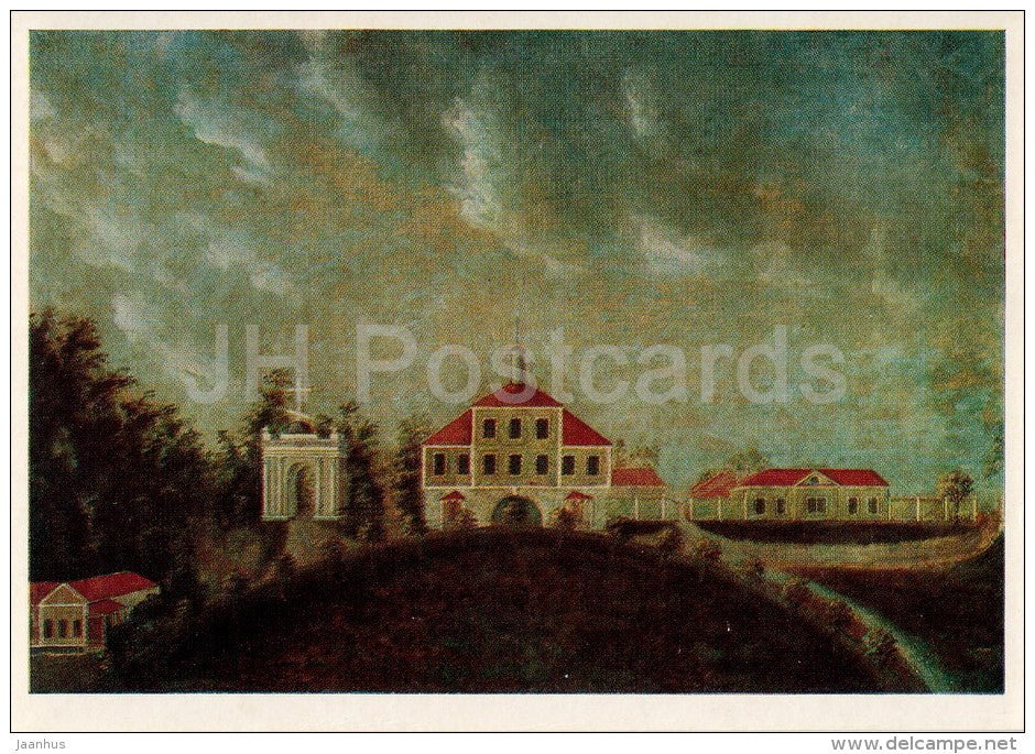 painting by Villain Artist - Church gates and service buildings - Russian art - Russia USSR - 1980 - unused