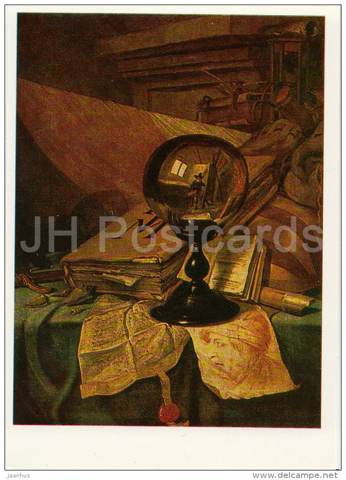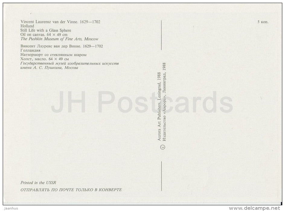painting by Vincent Laurensz van der Vinne - Still Life with a Glass Sphere - Dutch art - Russia USSR - 1988 - unused