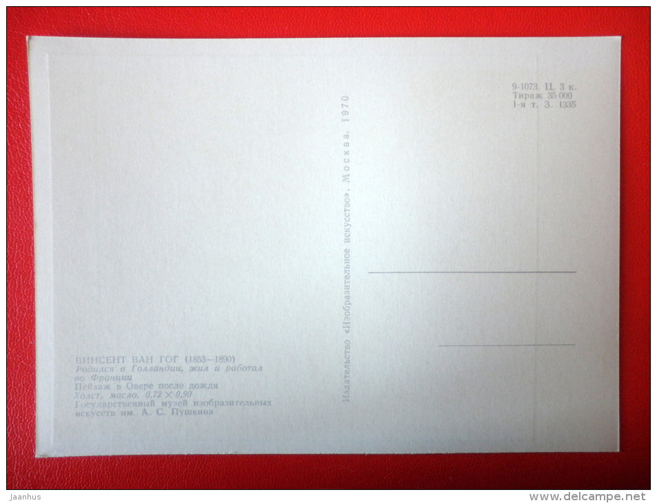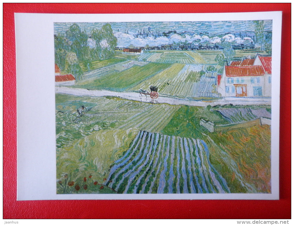 painting by Vincent van Gogh . Landscape at Auvers in the Rain - carriage - dutch art - unused