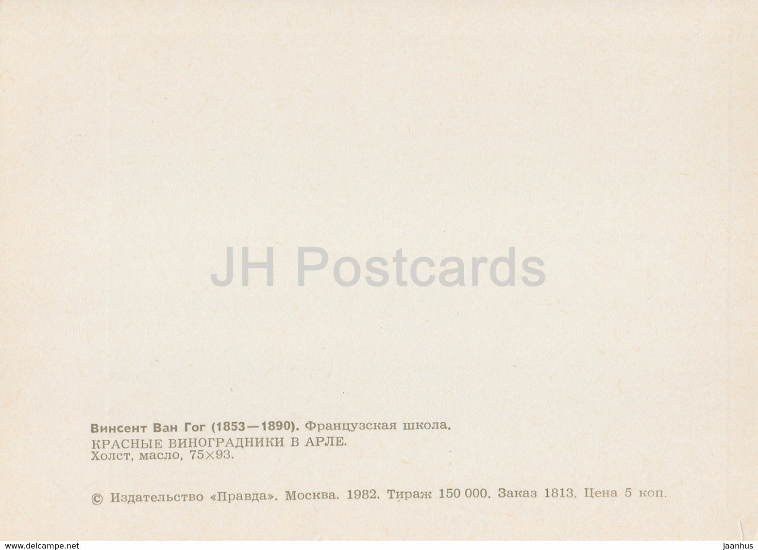 painting by Vincent van Gogh - Red vineyards in Arles - dutch art - 1982 - Russia USSR - unused