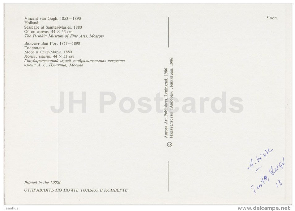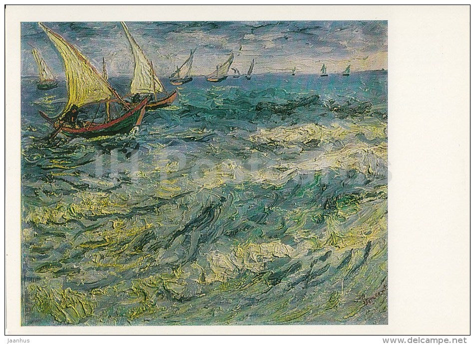 painting by Vincent van Gogh - Seascape at Saintes-Maries , 1880 boat - Dutch art - 1986 - Russia USSR - unused