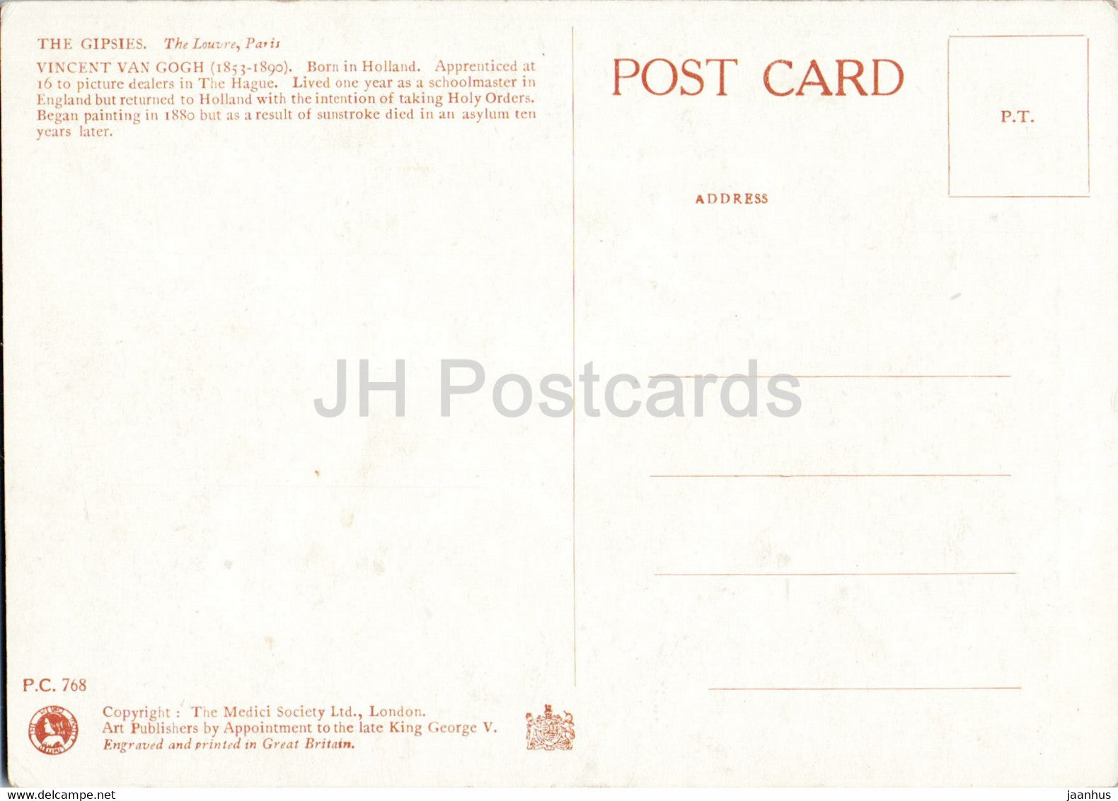 painting by Vincent van Gogh - The Gipsies - horse carriage - Dutch art - England - unused