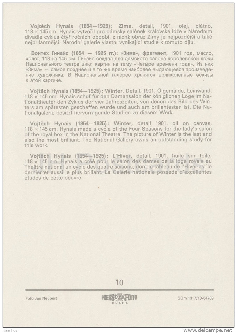 painting by Vojtech Hynais - Winter , detail , 1901 - woman - Czech art - large format card - Czech - unused