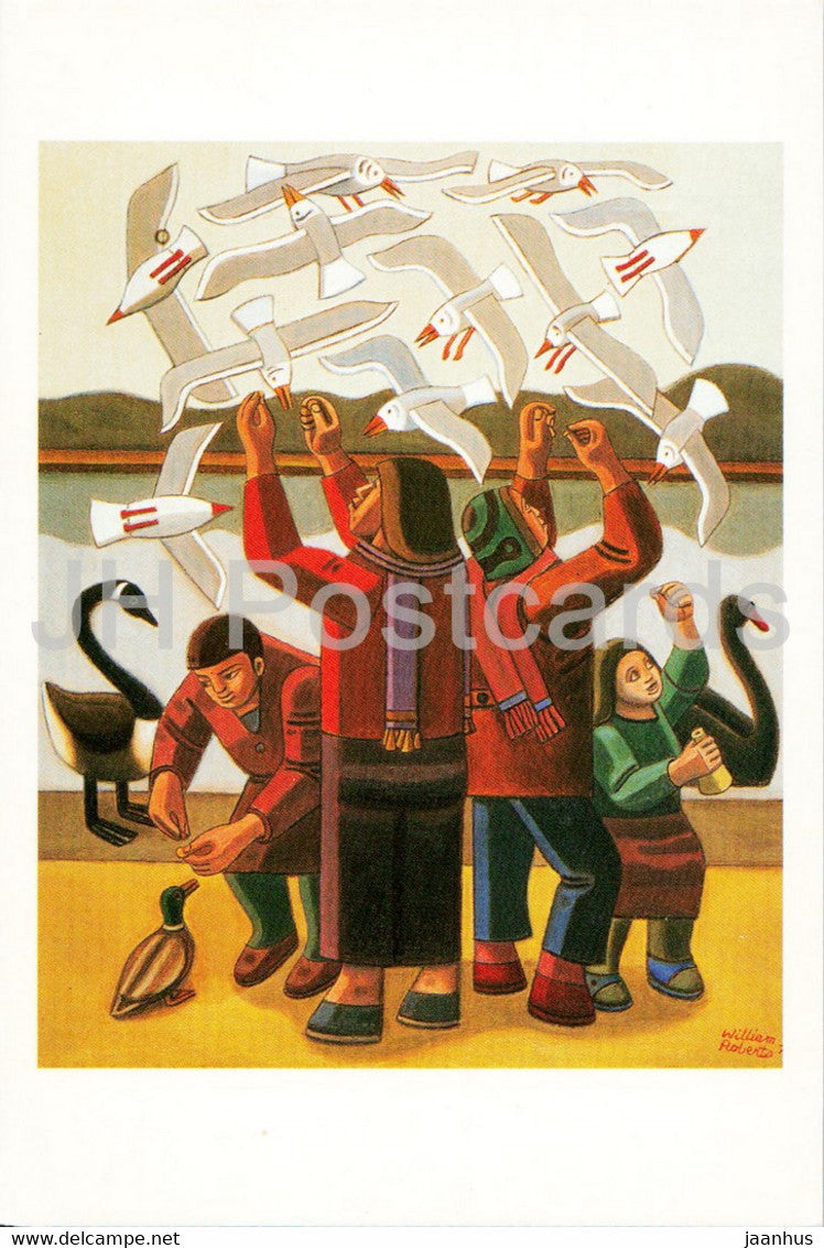 painting by William Roberts - Feeding the Seagulls - British art - England - unused
