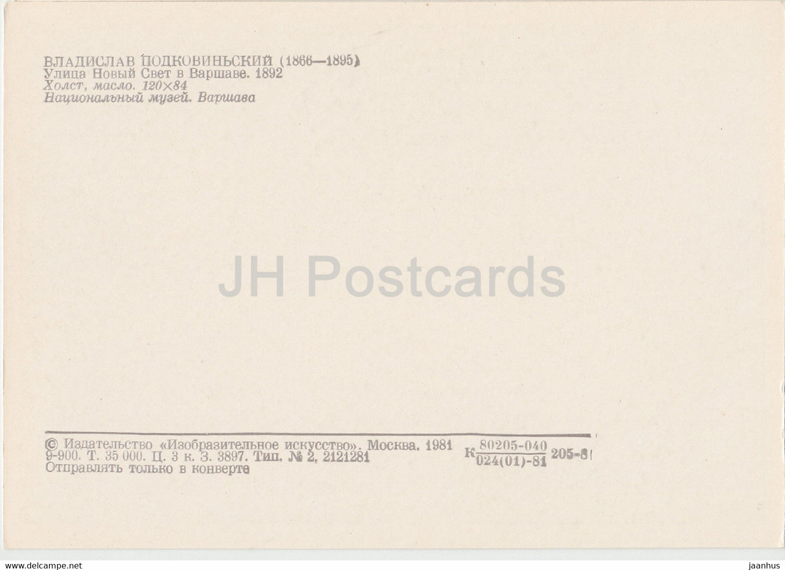 painting by Wladyslaw Podkowinski - Novyi Svet street in Warszawa - Warsaw - Polish art - 1981 - Russia USSR - unused
