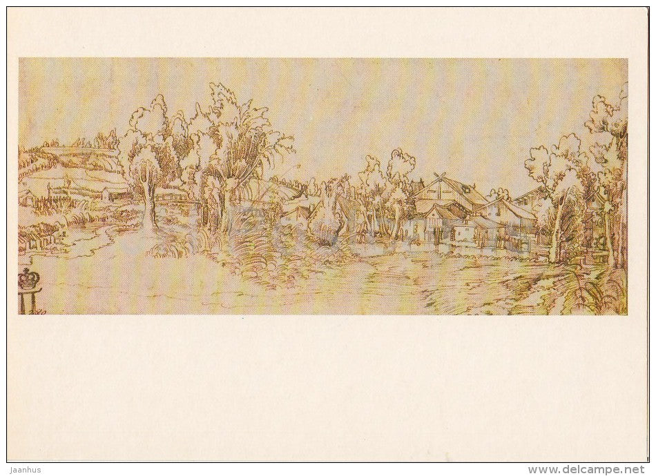 painting by Wolfgang Huber - The Landscape - German art - Russia USSR - 1984 - unused