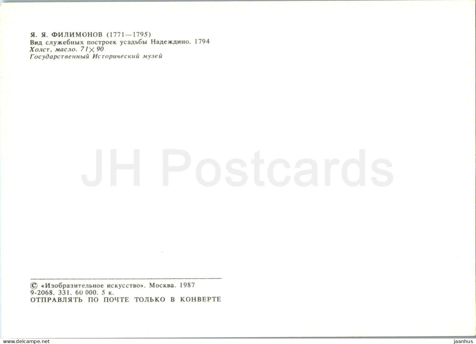 painting by Y. Filimonov - Service buildings of the Nadezhdino estate - Russian art - 1987 - Russia USSR - unused