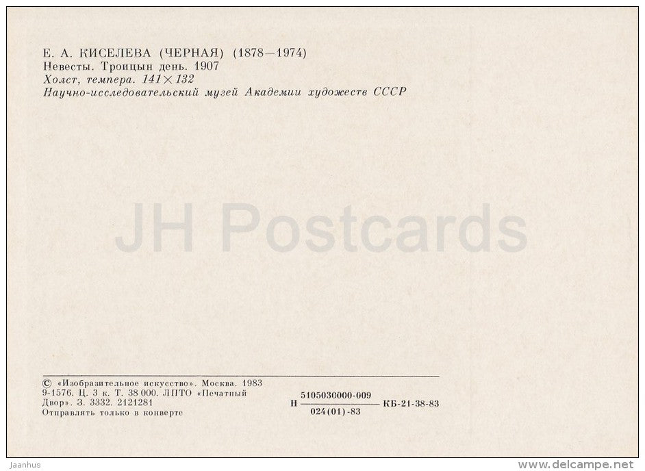 painting by Y. Kiselyeva - Brides . Trinity Day , 1907 - young women - Russian art - Russia USSR - 1983 - unused