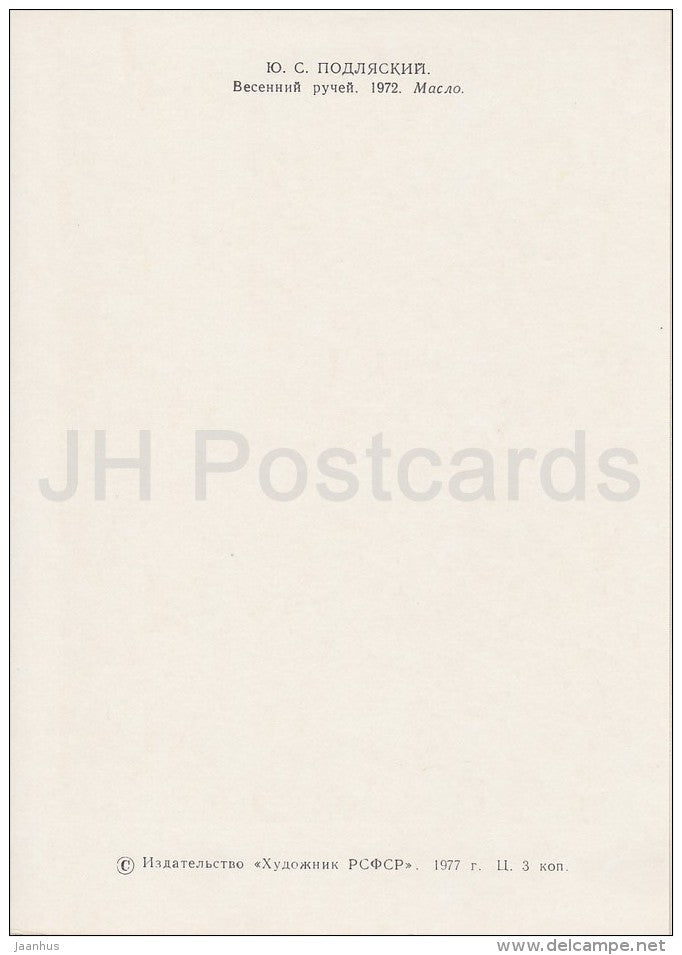 painting by Y. Podlyasky - Autumn Creek , 1972 - Russian art - 1977 - Russia USSR - unused