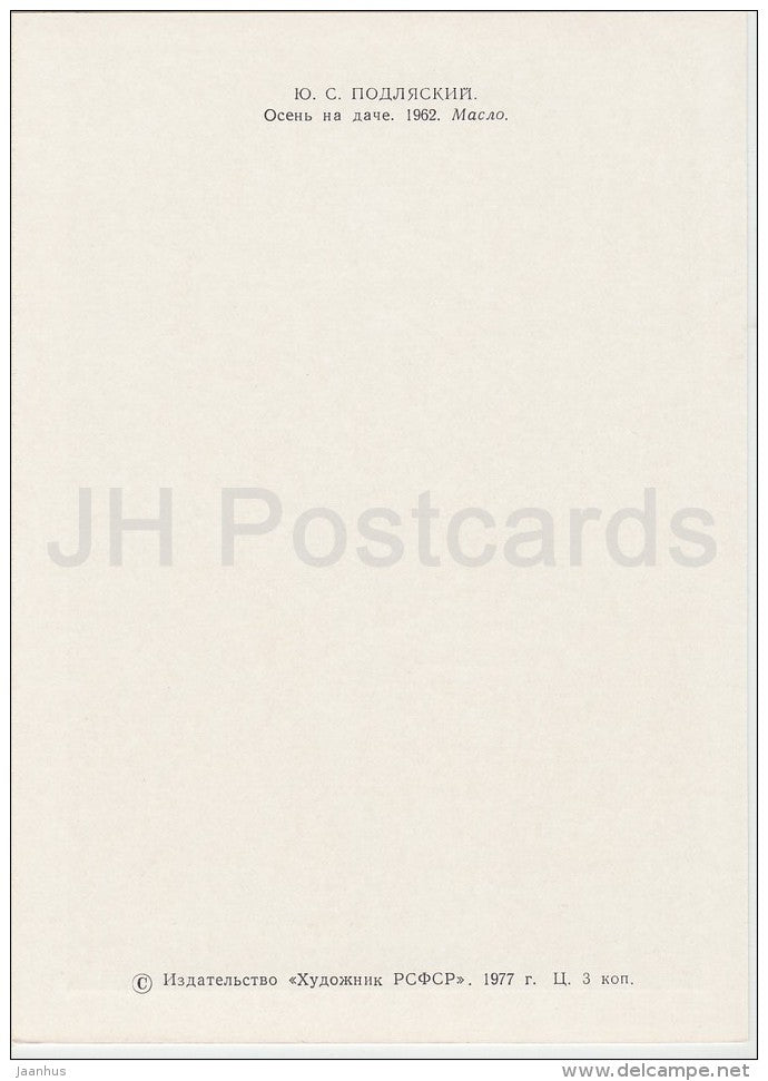 painting by Y. Podlyasky - Autumn in Countryside , 1962 - Russian art - 1977 - Russia USSR - unused