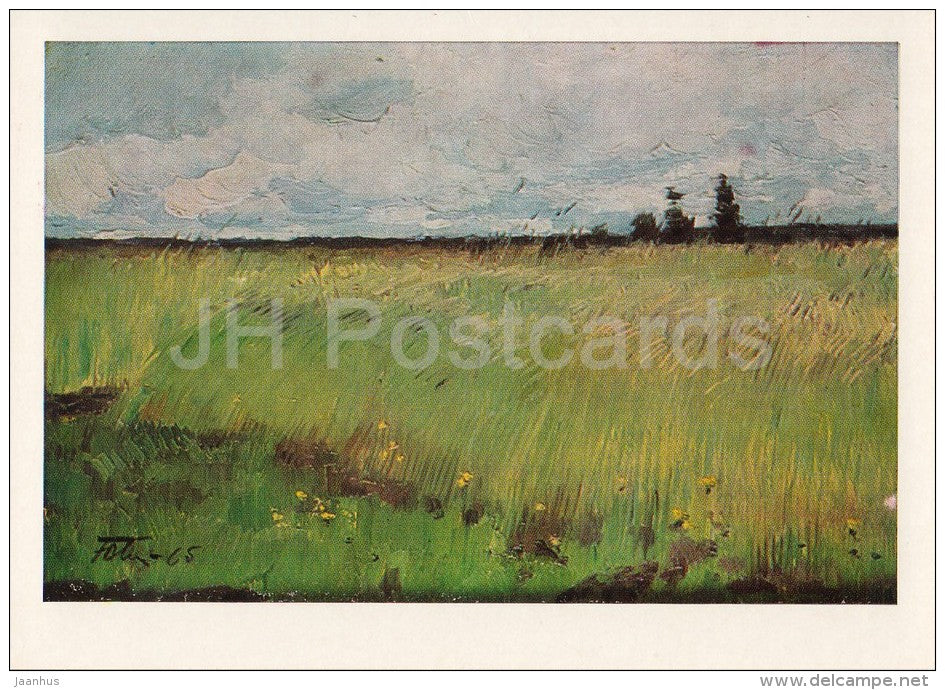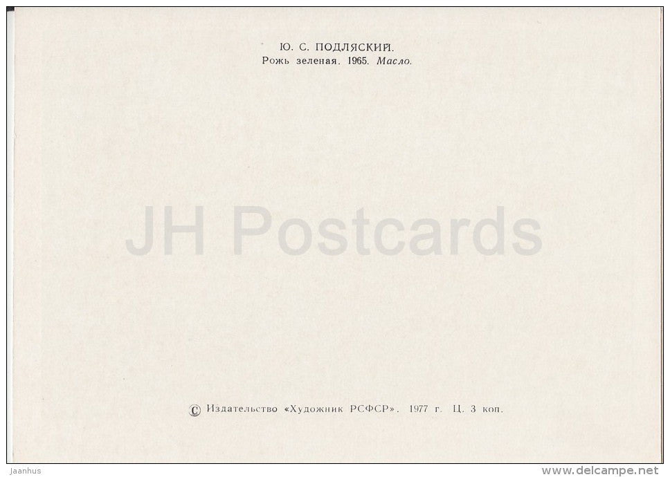 painting by Y. Podlyasky - Green Rye , 1965 - Russian art - 1977 - Russia USSR - unused
