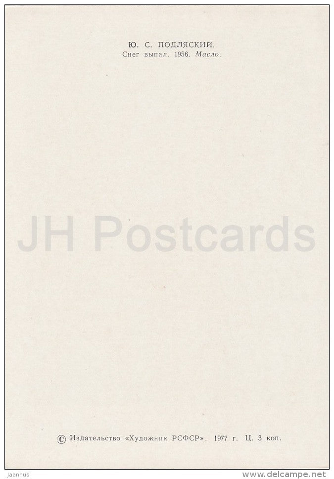 painting by Y. Podlyasky - Snow fell out , 1956 - window - pear - apple - Russian art - 1977 - Russia USSR - unused