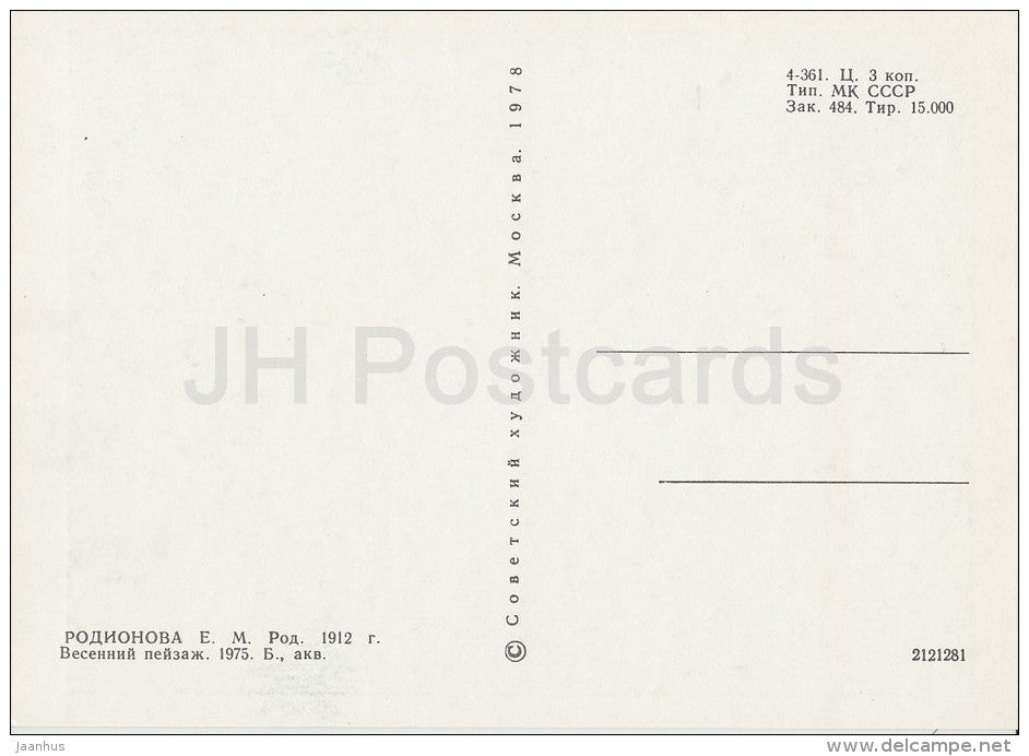 painting by Y. Rodionova - Spring Landscape , 1975 - Russian art - 1978 - Russia USSR - unused