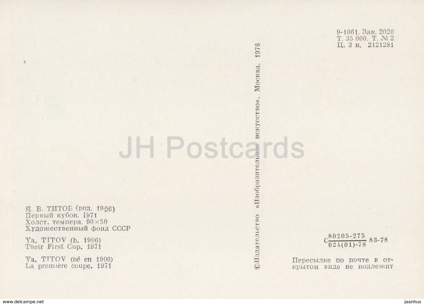 painting by Y. Titov - Their First Cup - Sport - Soviet art - 1978 - Russia USSR - unused