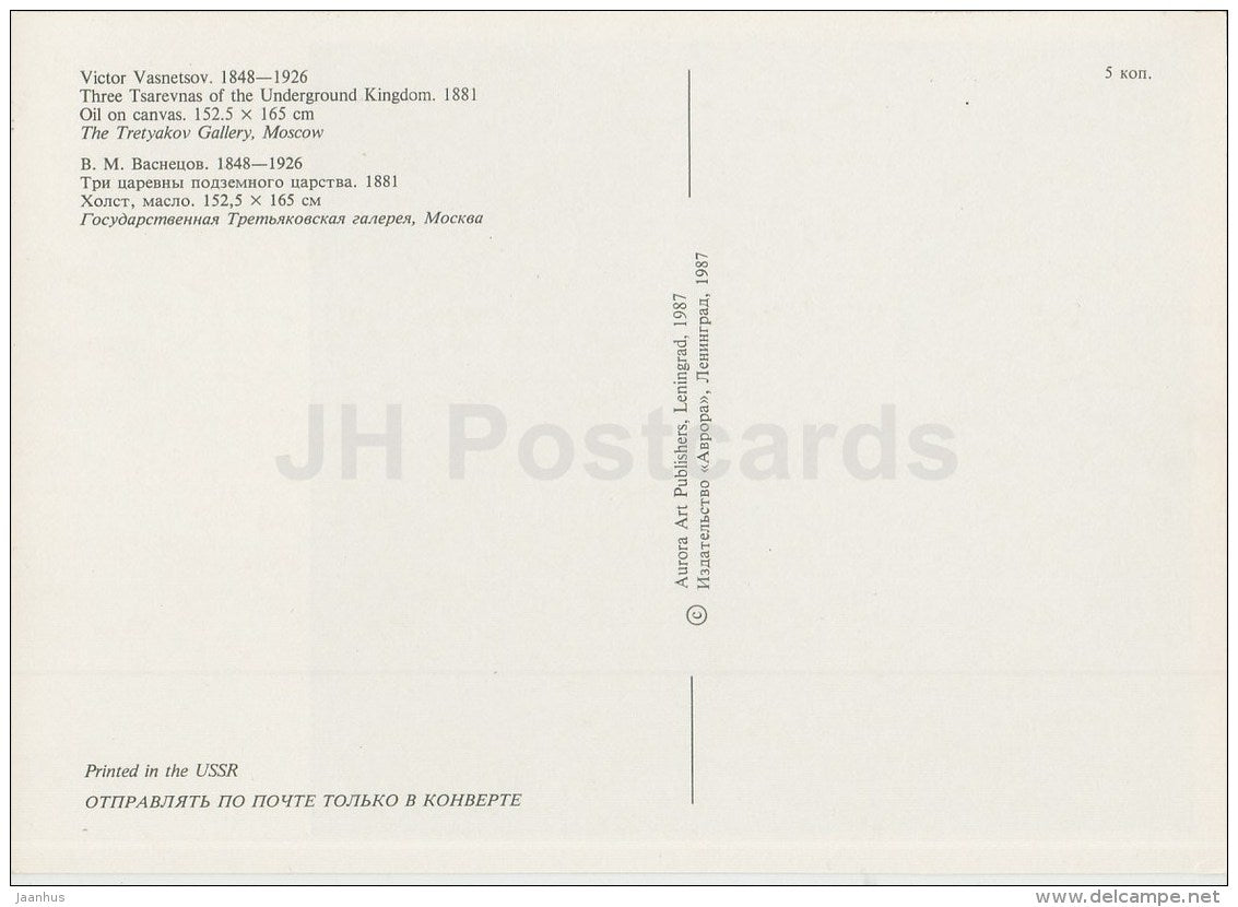 painting by Y. Vasnetsov - Three Tsarevnas of the Underground - Fairy Tale - Russian Art - 1987 - Russia USSR - unused