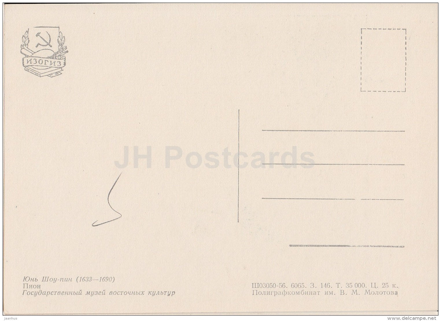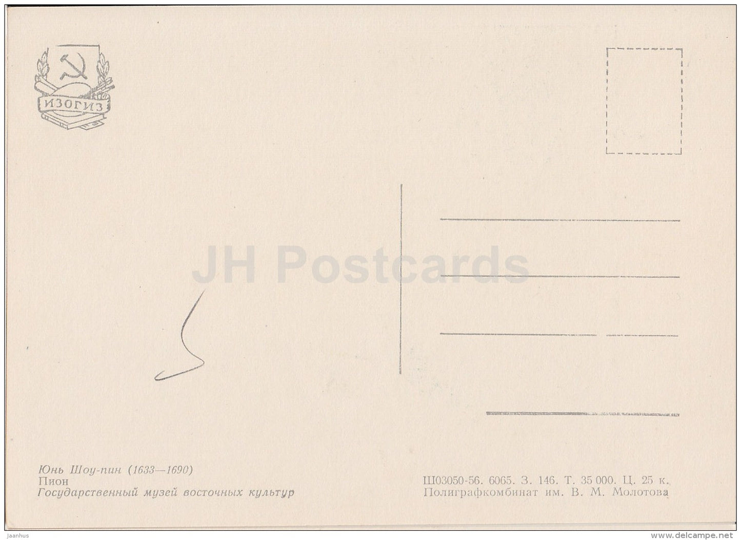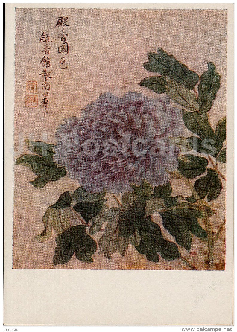 Painting by YUN SHOUPING - Peony - flowers - Chinese art - 1956 - Russia USSR - unused