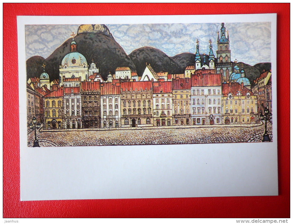 painting by Yuri Khimich . Market Square . Lviv . Lvov - ukrainian art - unused