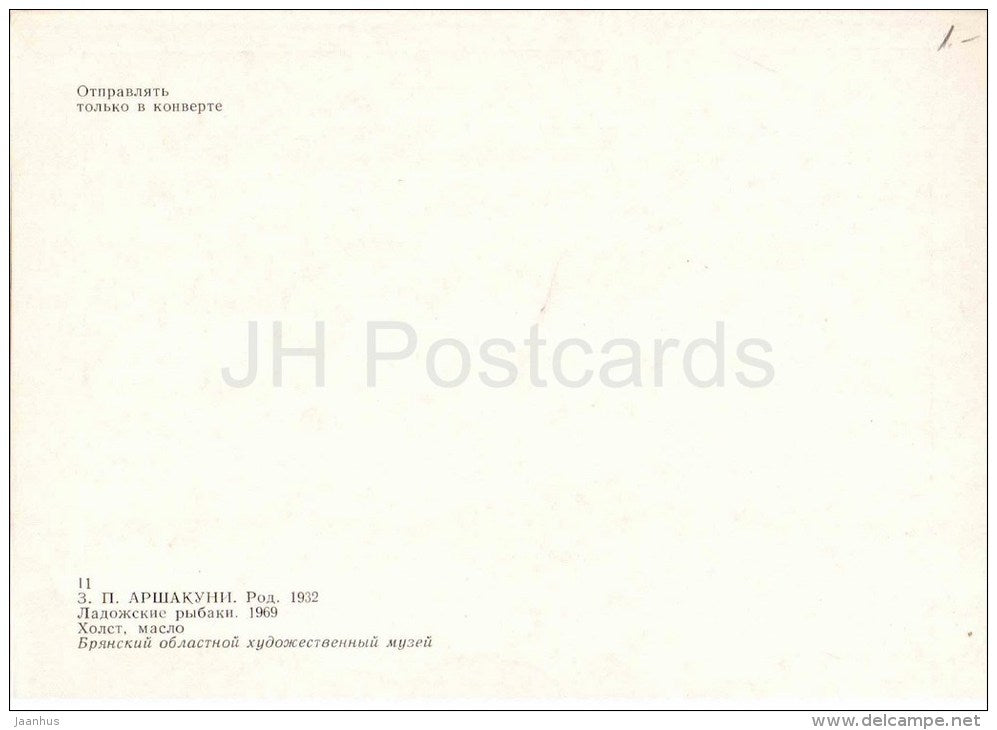 painting by Z. Arshakuni - Lake Ladoka Fishermen , 1969 - dog -russian art - unused