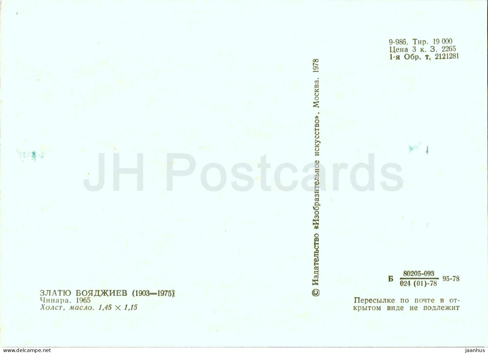 painting by Zlatyu Boyadzhiev - Platanus - Plane tree - Bulgarian art - 1978 - Russia USSR - unused