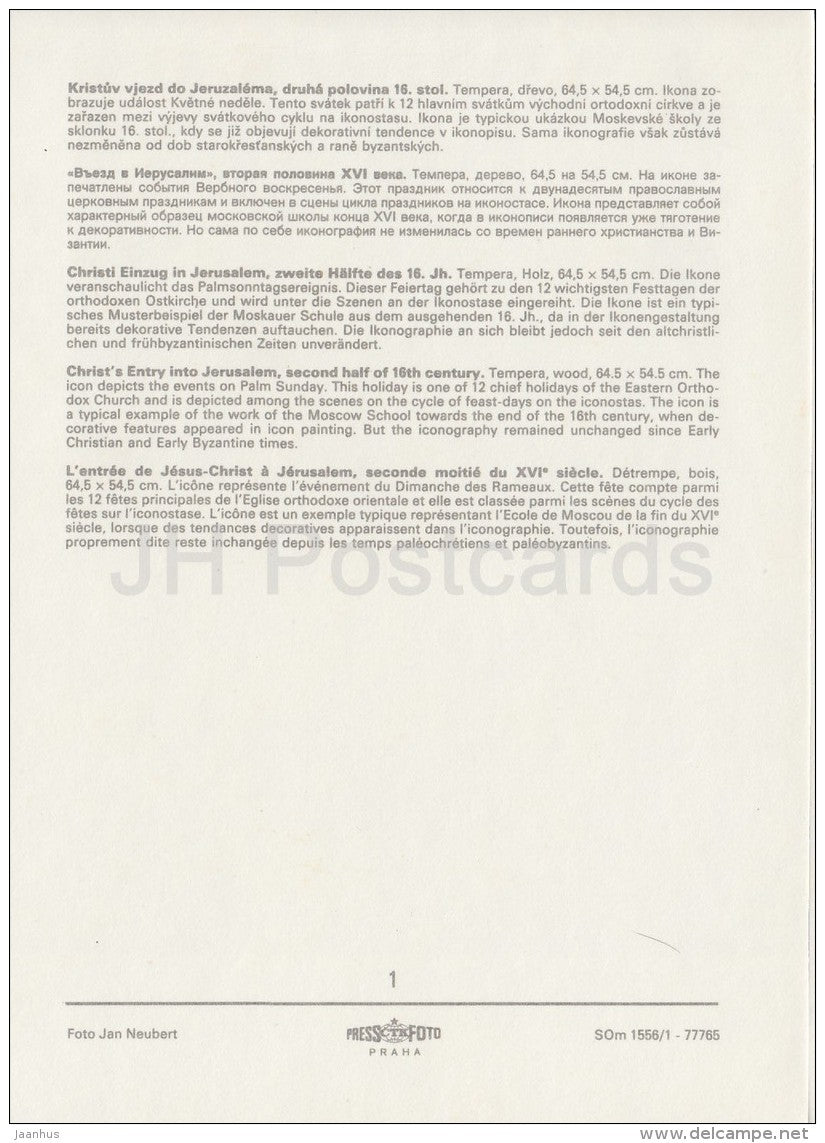 painting - Christ´s Entry into Jerusalem , 16th century - Russian art - large format card - Czechoslovakia - unuse