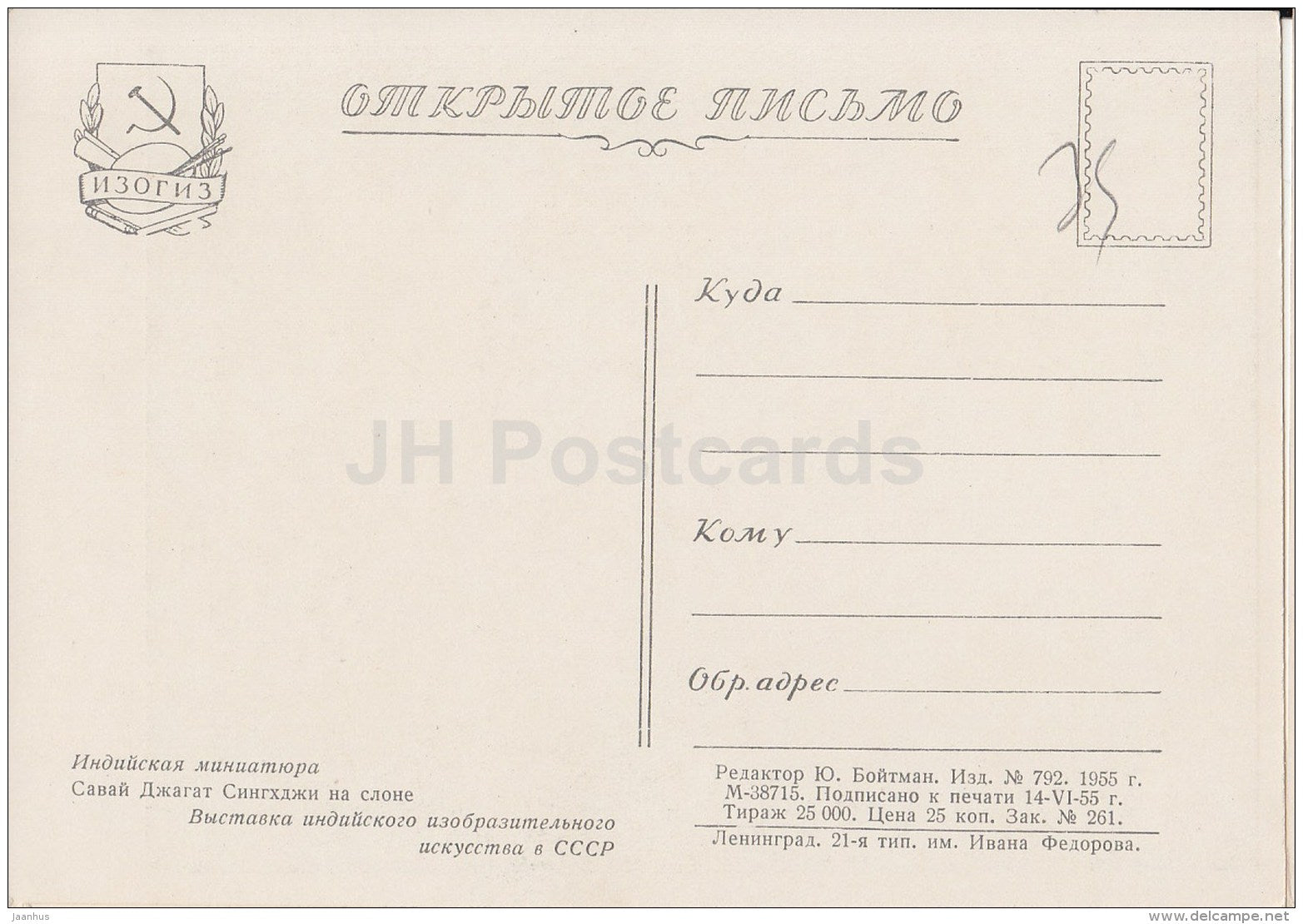 painting - Sawat Singhji on the Elephant - Indian art - 1955 - Russia USSR - unused