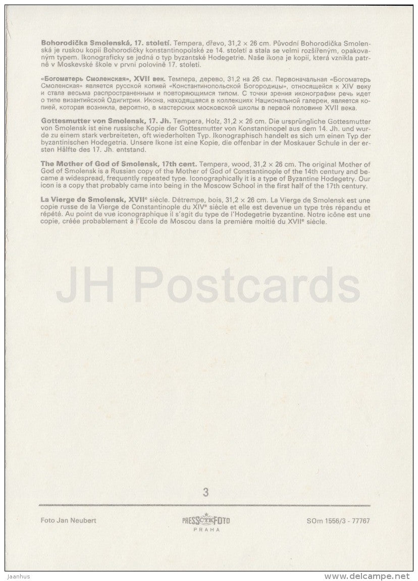 painting - The Mother of God of Smolensk , 17th century - Russian art - large format card - Czechoslovakia - unused