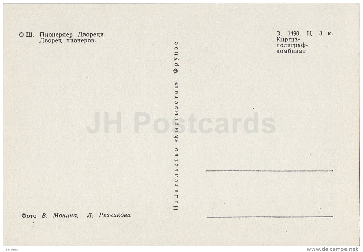 Palace of Pioneers - Osh - old postcard - Kyrgyzstan USSR - unused