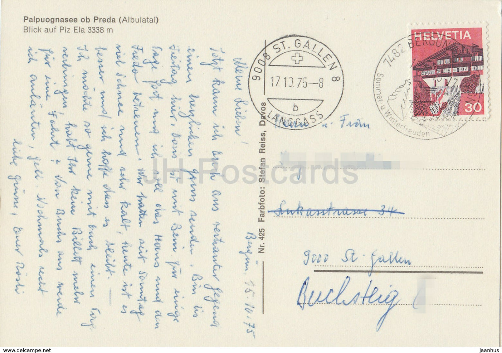 Palpuognasee ob Preda (Albulatal) - Blick auf Piz Ela 3338 m - 425 - 1975 - Switzerland - used
