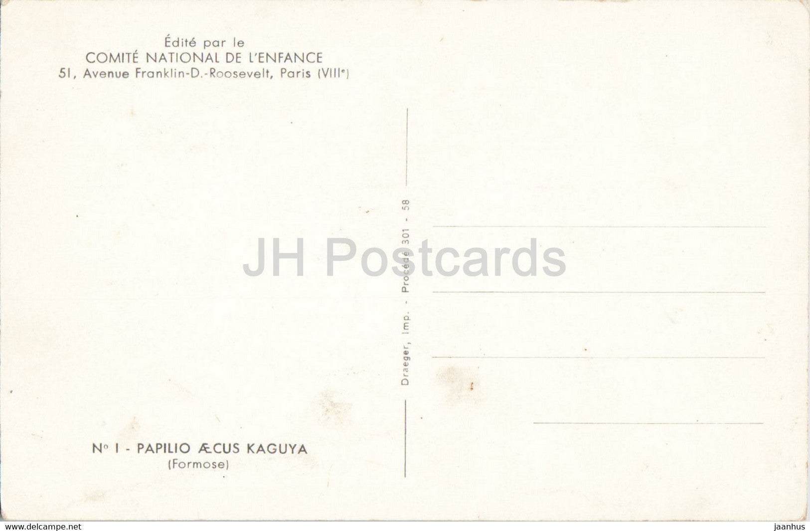 Papilio Aecus Kaguya - butterfly - old postcard - France - unused