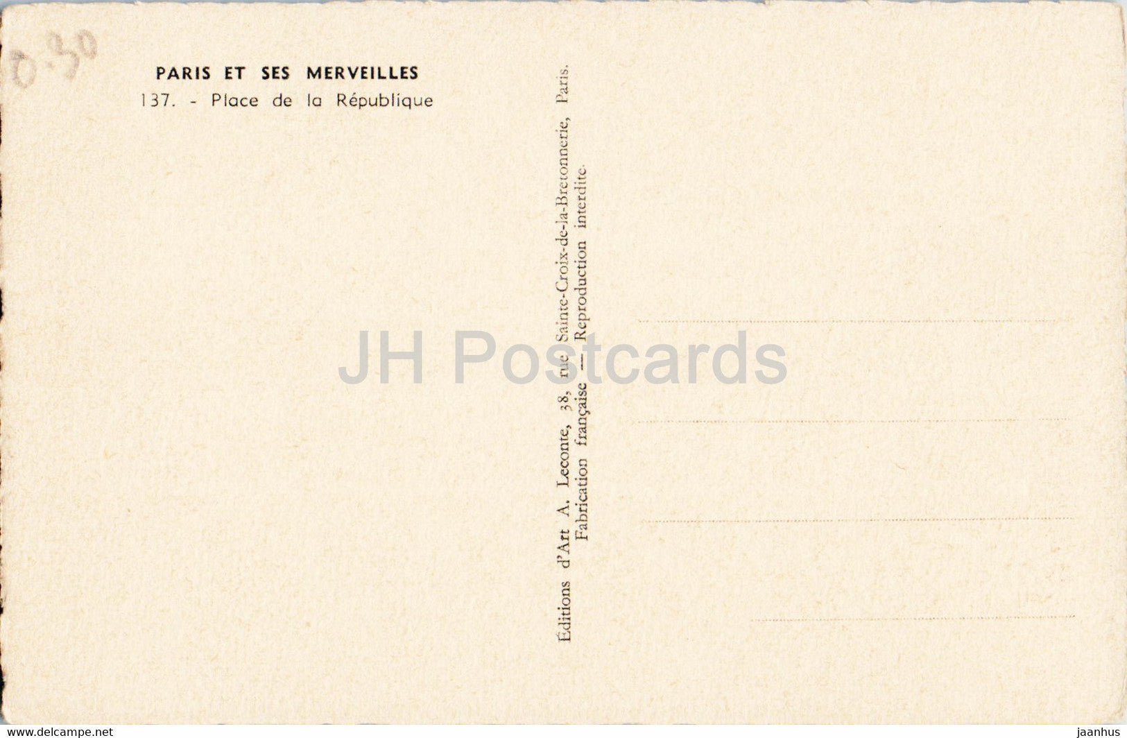 Paris et ses Merveilles - Place de la Republique - bus - car - 137 - old postcard - France - unused
