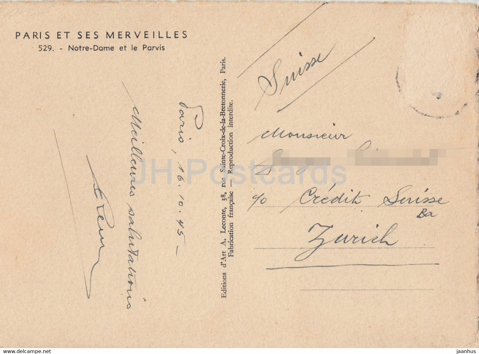 Paris - Notre Dame et le Parvis - old postcard - 1945 - France - used