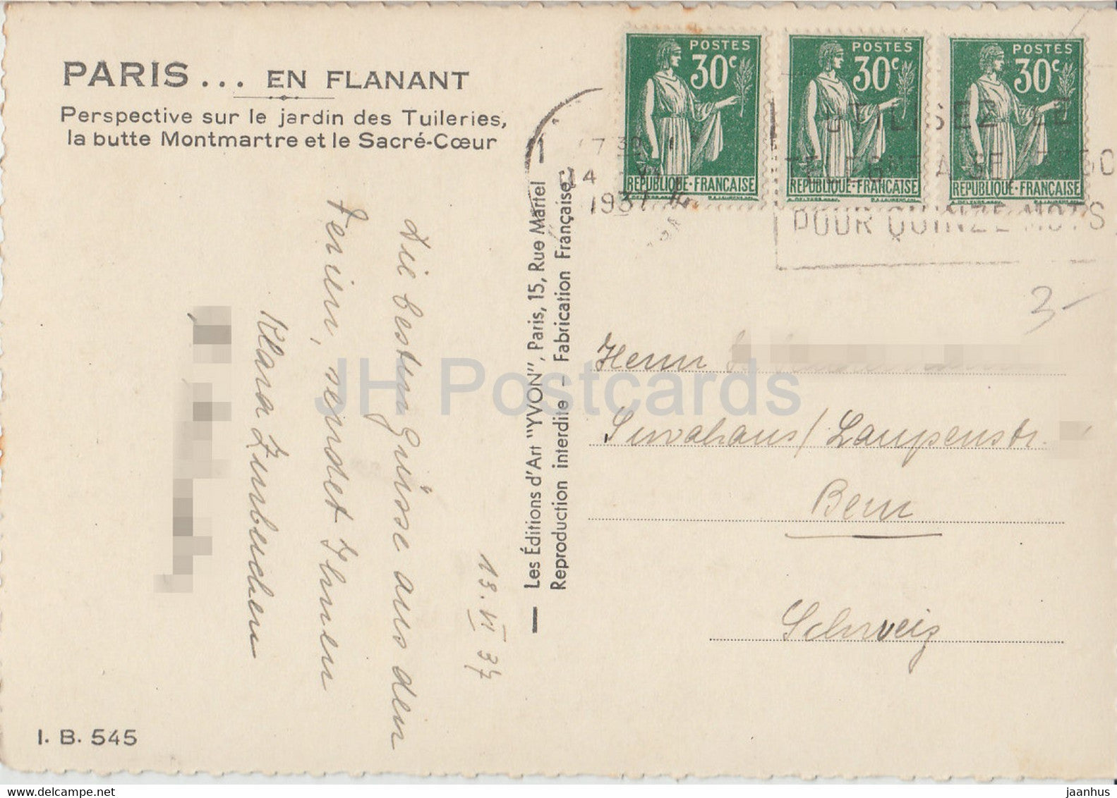 Paris - Perspective sur le jardin des Tuileries - la butte Montmartre et le Sacre Coeur - 1937 - France - used