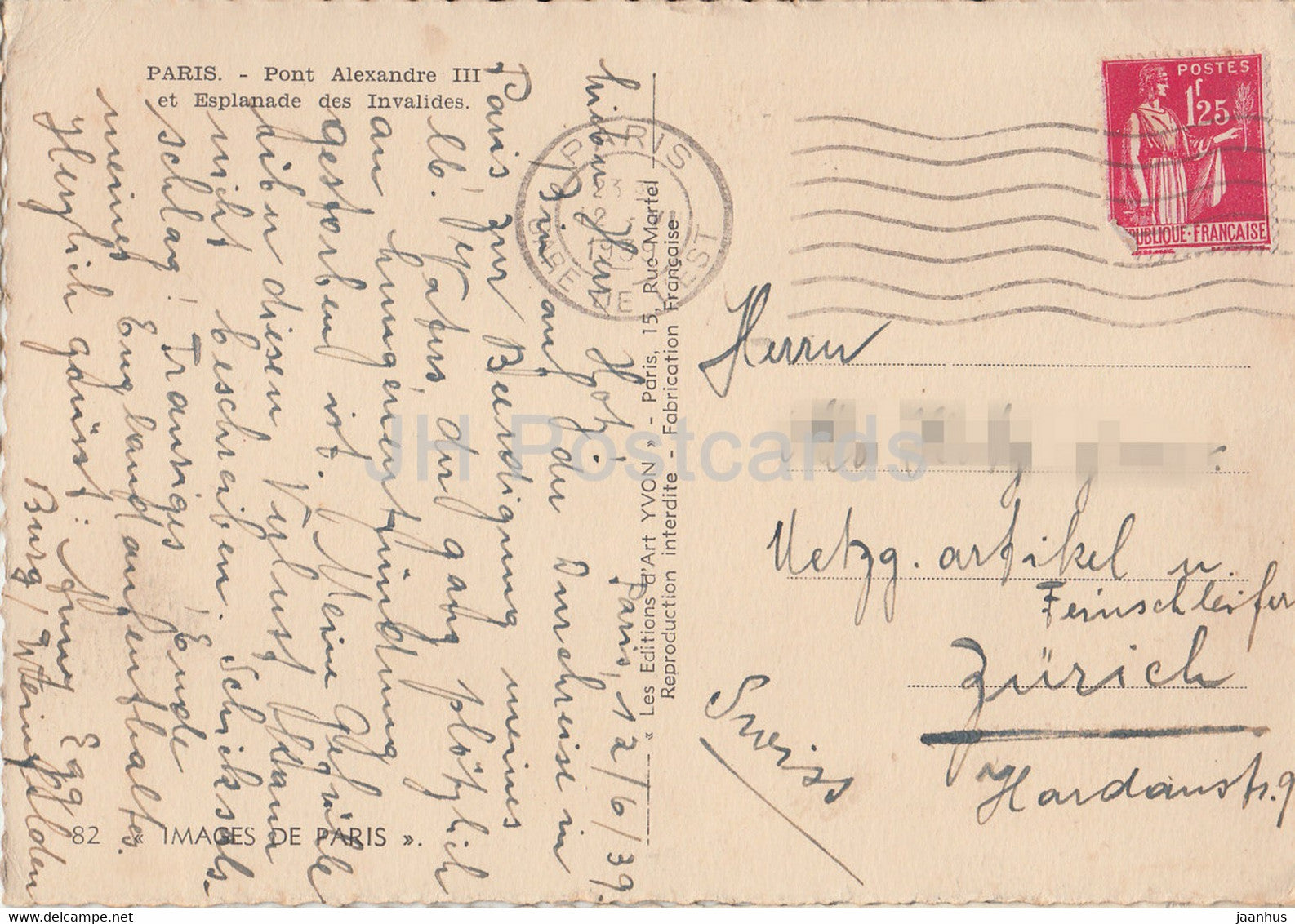 Paris - Pont Alexandre III et Esplanade des Invalides - bridge - 82 - old postcard - 1939 - France - used