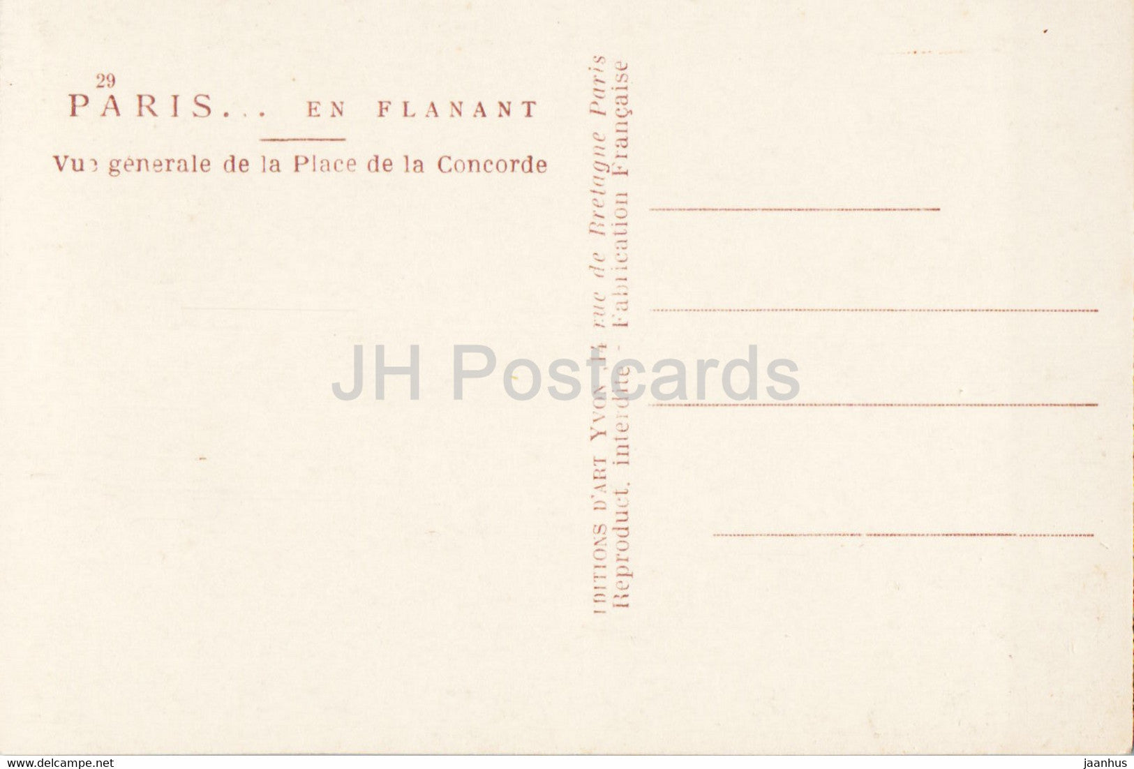 Paris - Vue generale de la Place de la Concorde - 29 - old postcard - France - unused