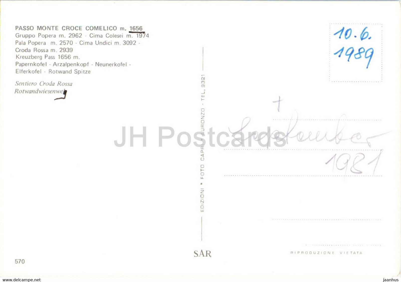 Passo Monte Croce Comelico - Gruppo Popera - Cima Colesei - Pala Popera - Cima Undici - 1989 - Italy - used