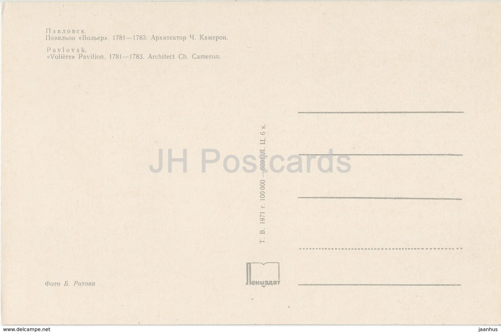 Pavlovsk - Voliere Pavilion - 1971 - Russia USSR - unused