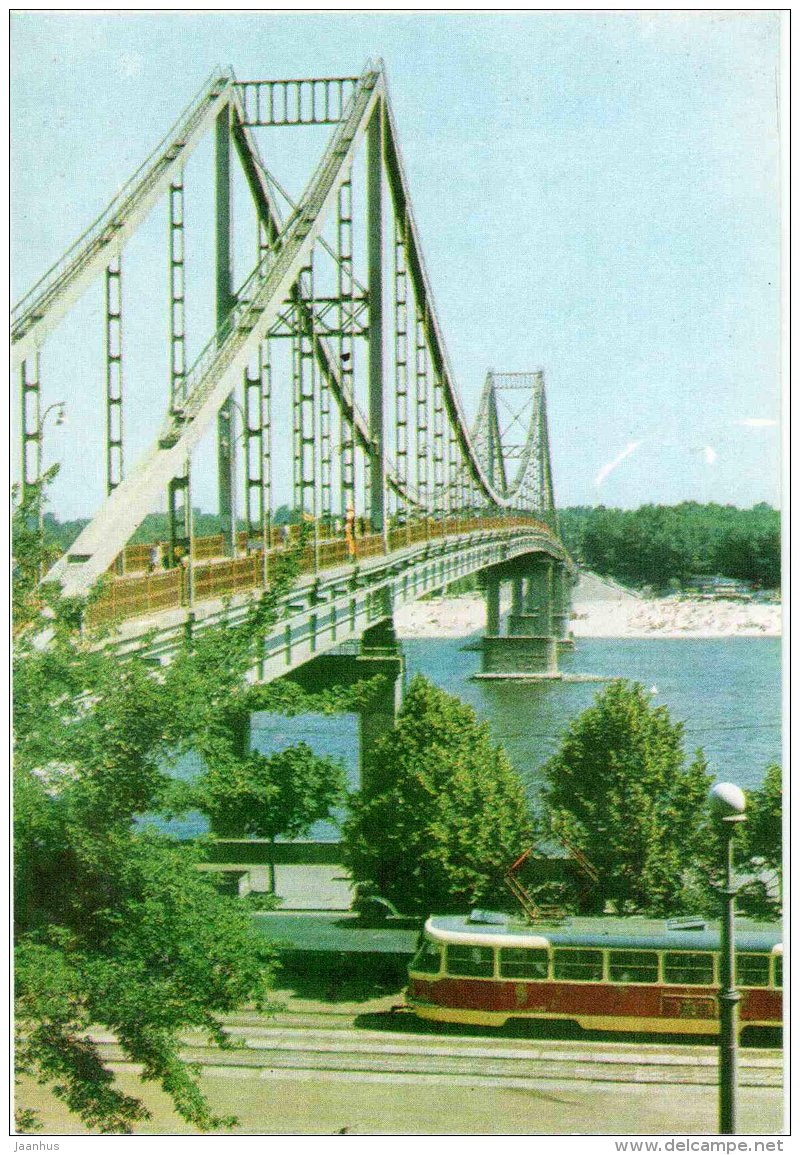 Pedestrian bridge over the Dniepr river - tram - Kiev - Kyiv - 1973 - Ukraine USSR - unused