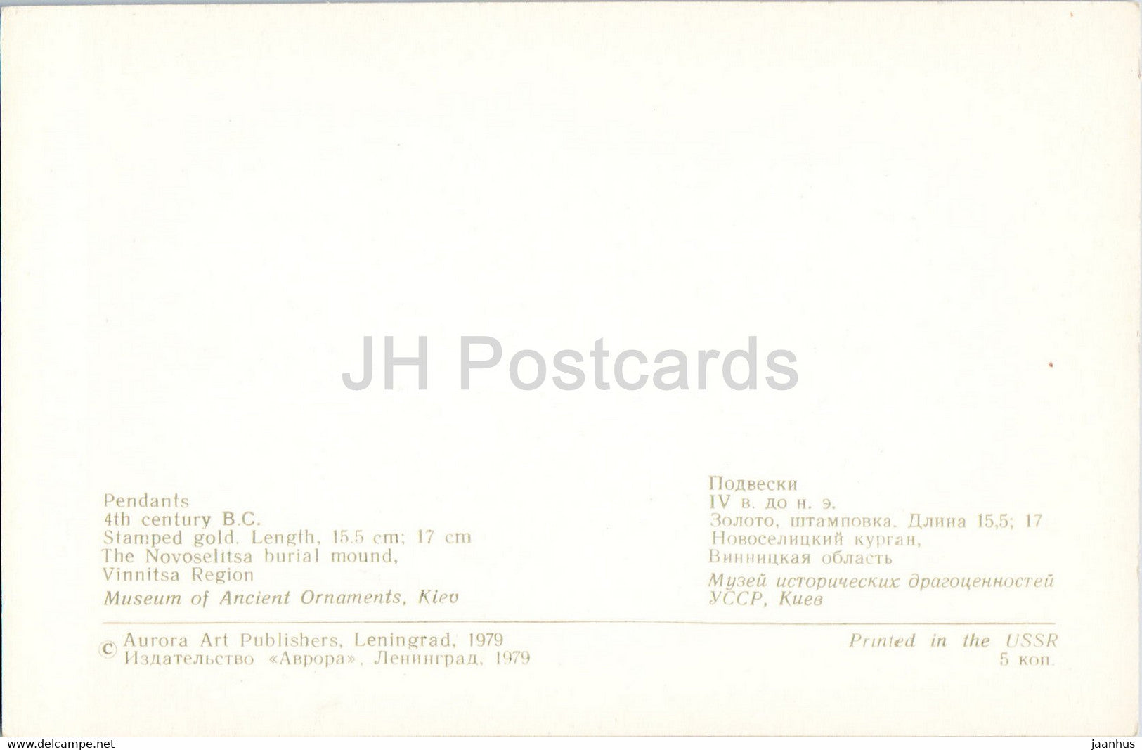 Pendants - Novoselitsa burial mound - Goldwork of 6th-2nd centuries BC - Ancient Art - 1979 - Russia USSR - unused