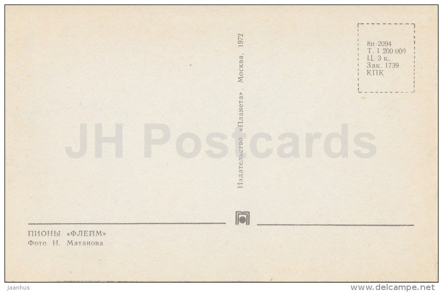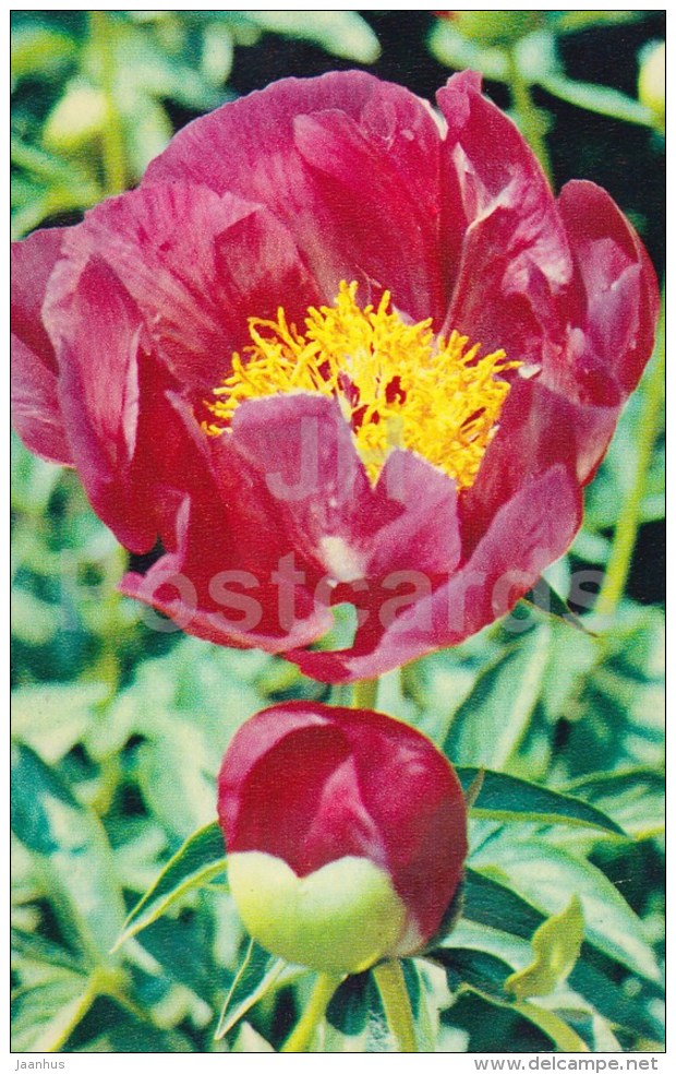 peony Flame - flowers - 1972 - Russia USSR - unused