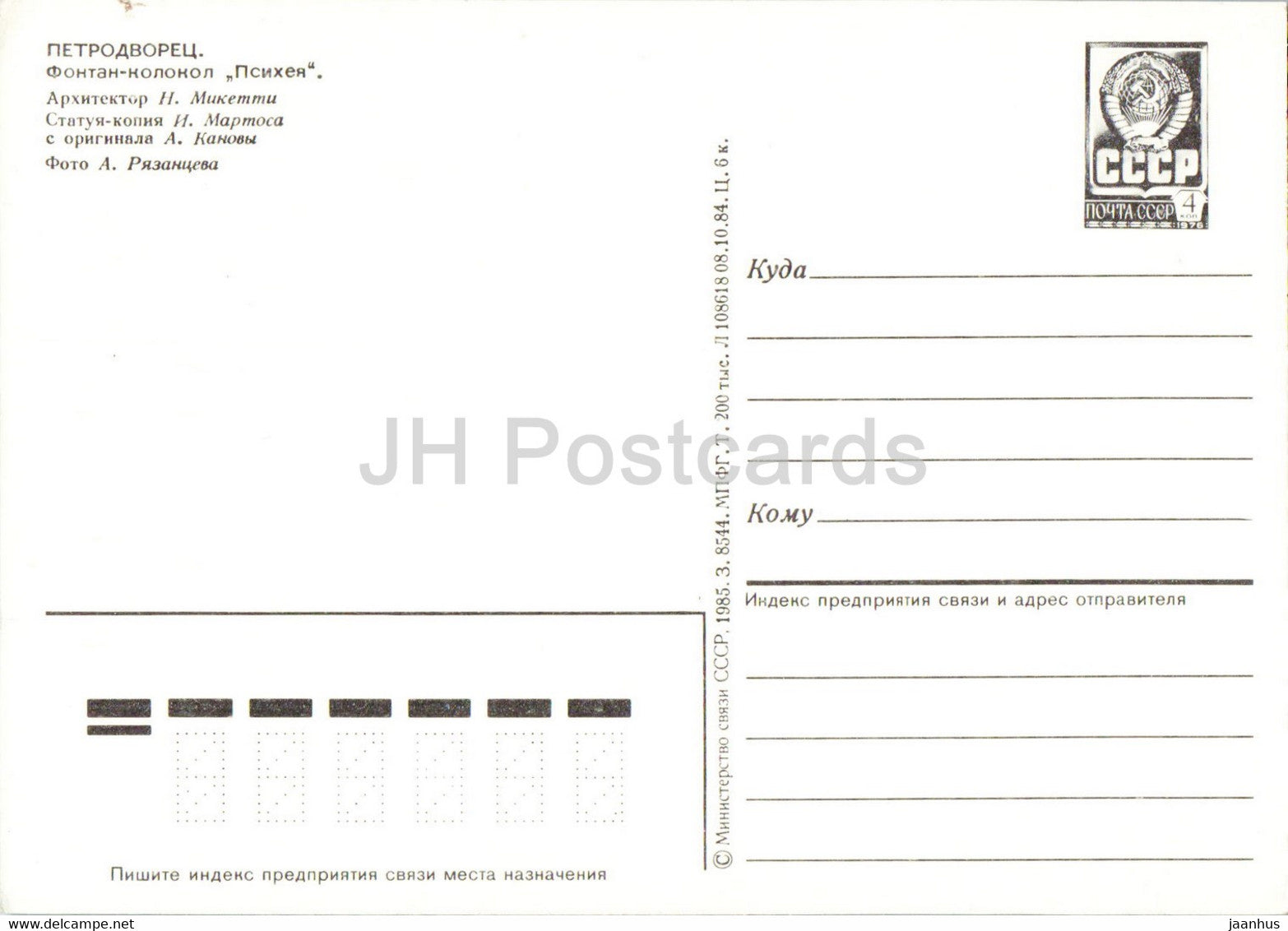 Petrodvorets - Bell Fountain Psyche - postal stationery - 1985 - Russia USSR - unused