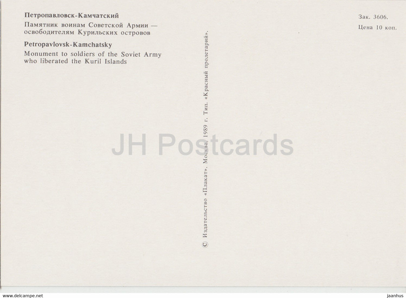 Petropavlovsk-Kamchatsky - monument to soldiers of Soviet Army who liberated Kuril Islands - 1989 - Russia USSR - unused