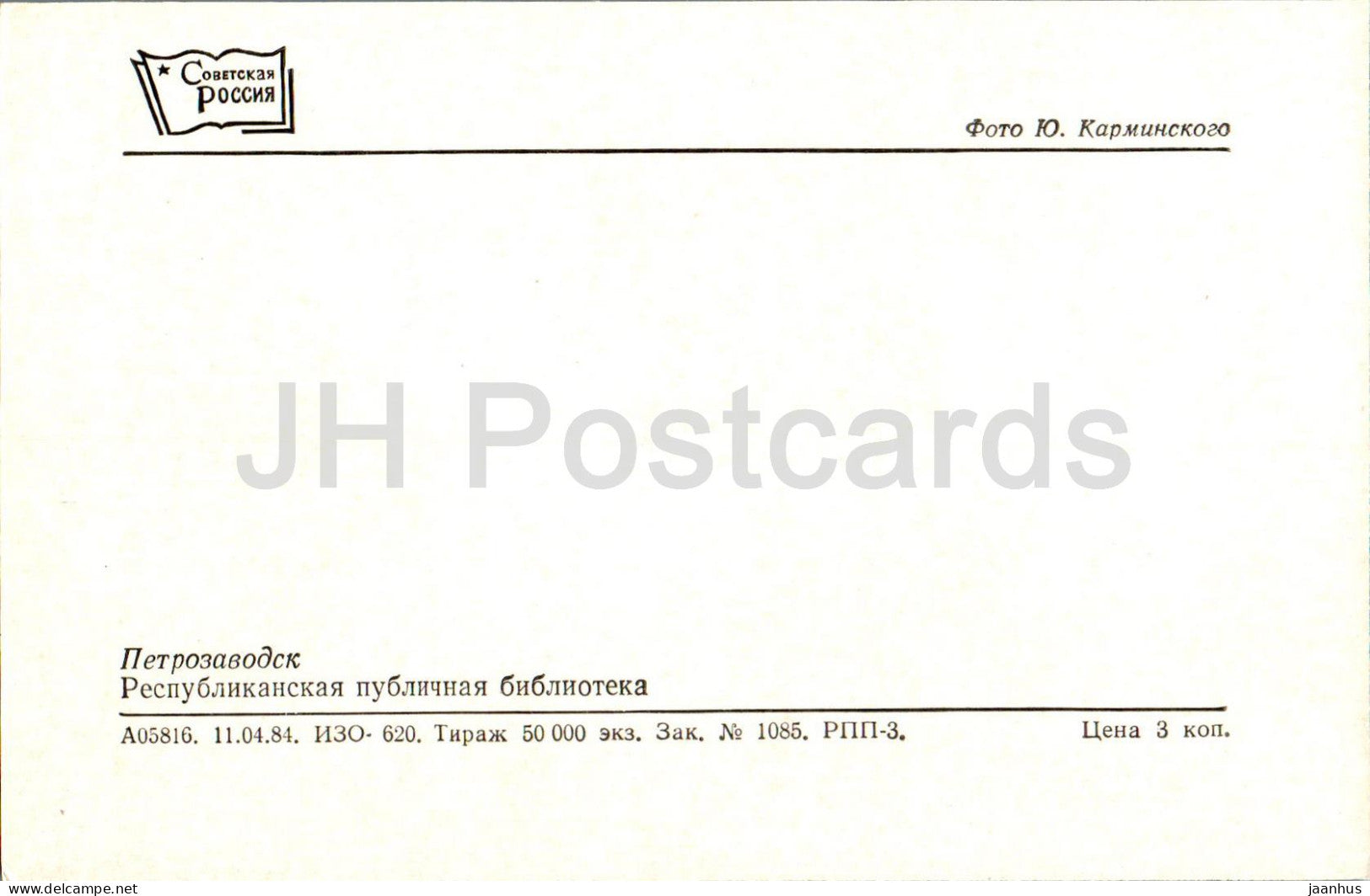 Petrozavodsk - Public Library of Republic - 1984 - Russia USSR - unused