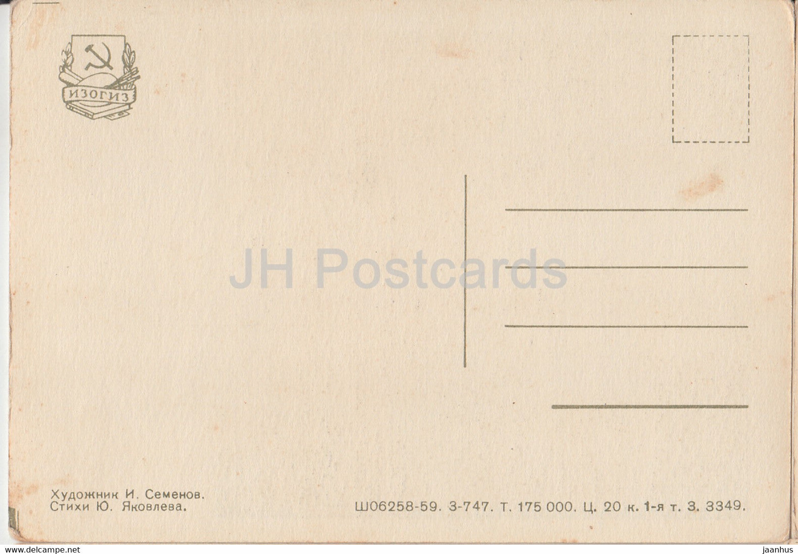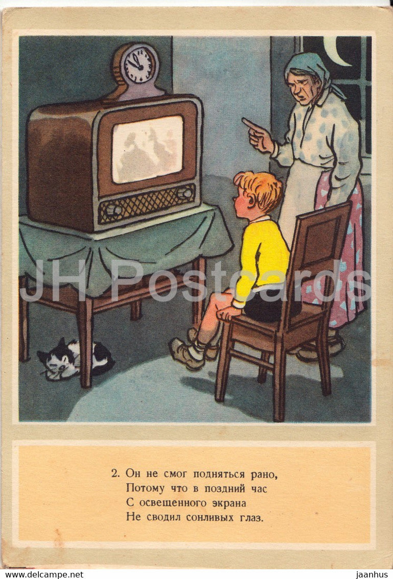 Petya Vorobyev - Watching TV - illustration by Semyonov - 1959 - old postcard - Russia USSR - unused