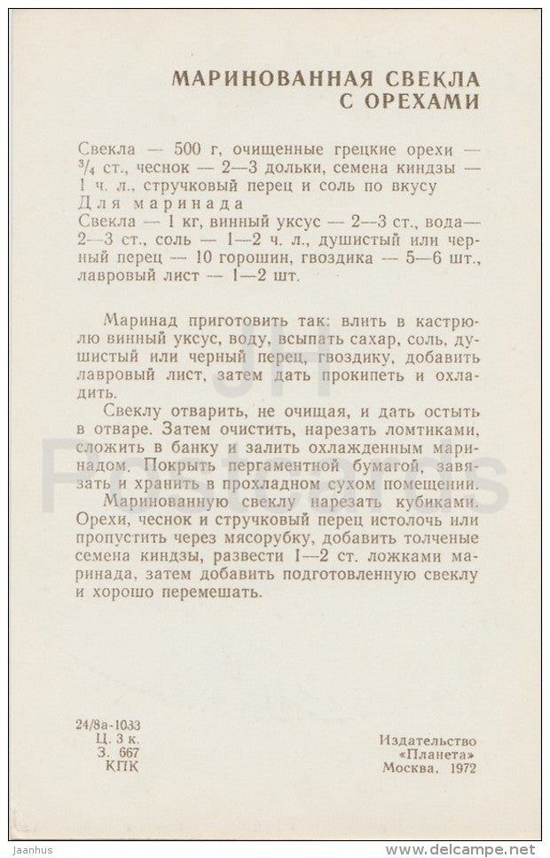 pickled beets with walnuts - Dishes - Cuisine - 1972 - Russia USSR - unused