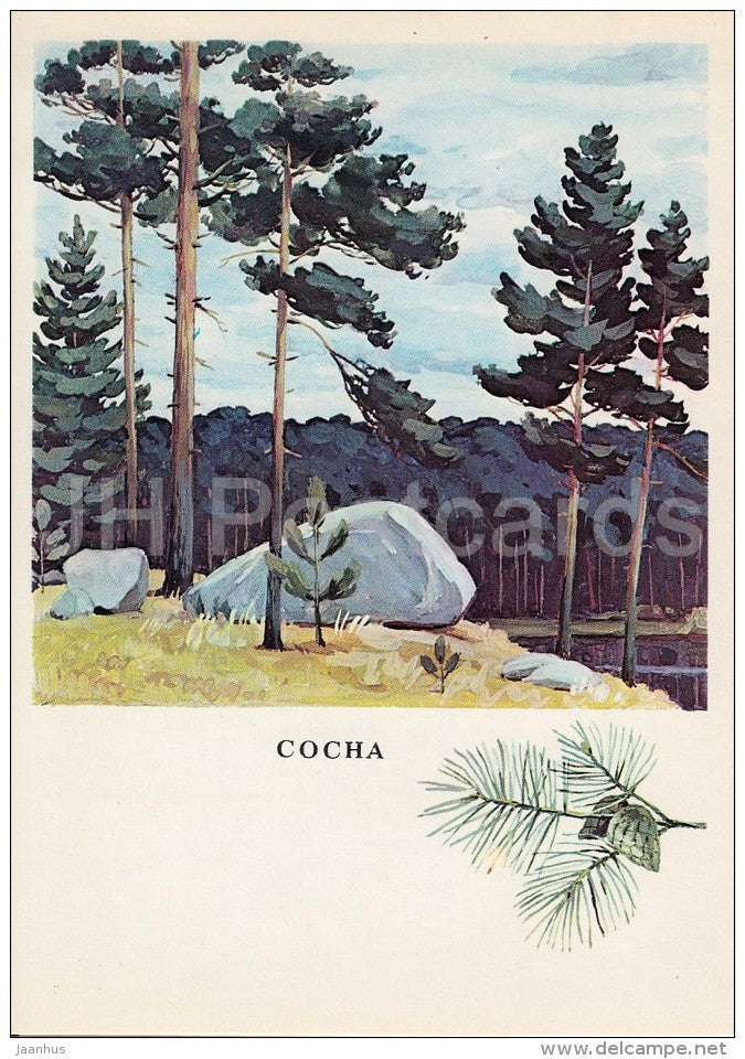Pine tree - Pinus - Russian Forest - trees - illustration by G. Bogachev - 1979 - Russia USSR - unused
