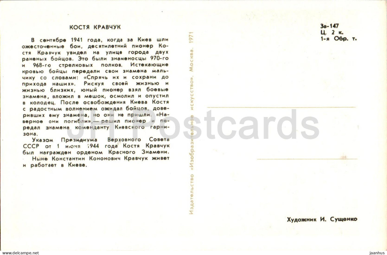 Pioneers Heroes - Kostya Kravchuk - boy - illustration by I. Suschenko - 1971 - Russia USSR - unused