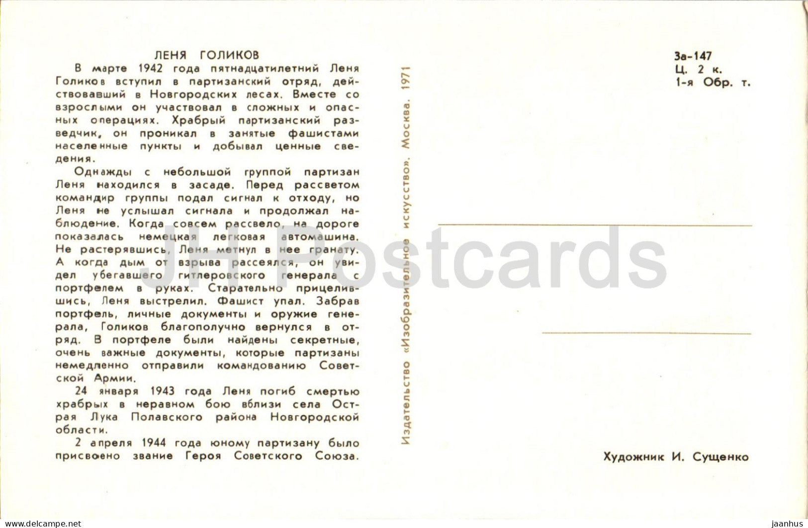Pioneers Heroes - Lenya Golikov - boy - illustration by I. Suschenko - 1971 - Russia USSR - unused