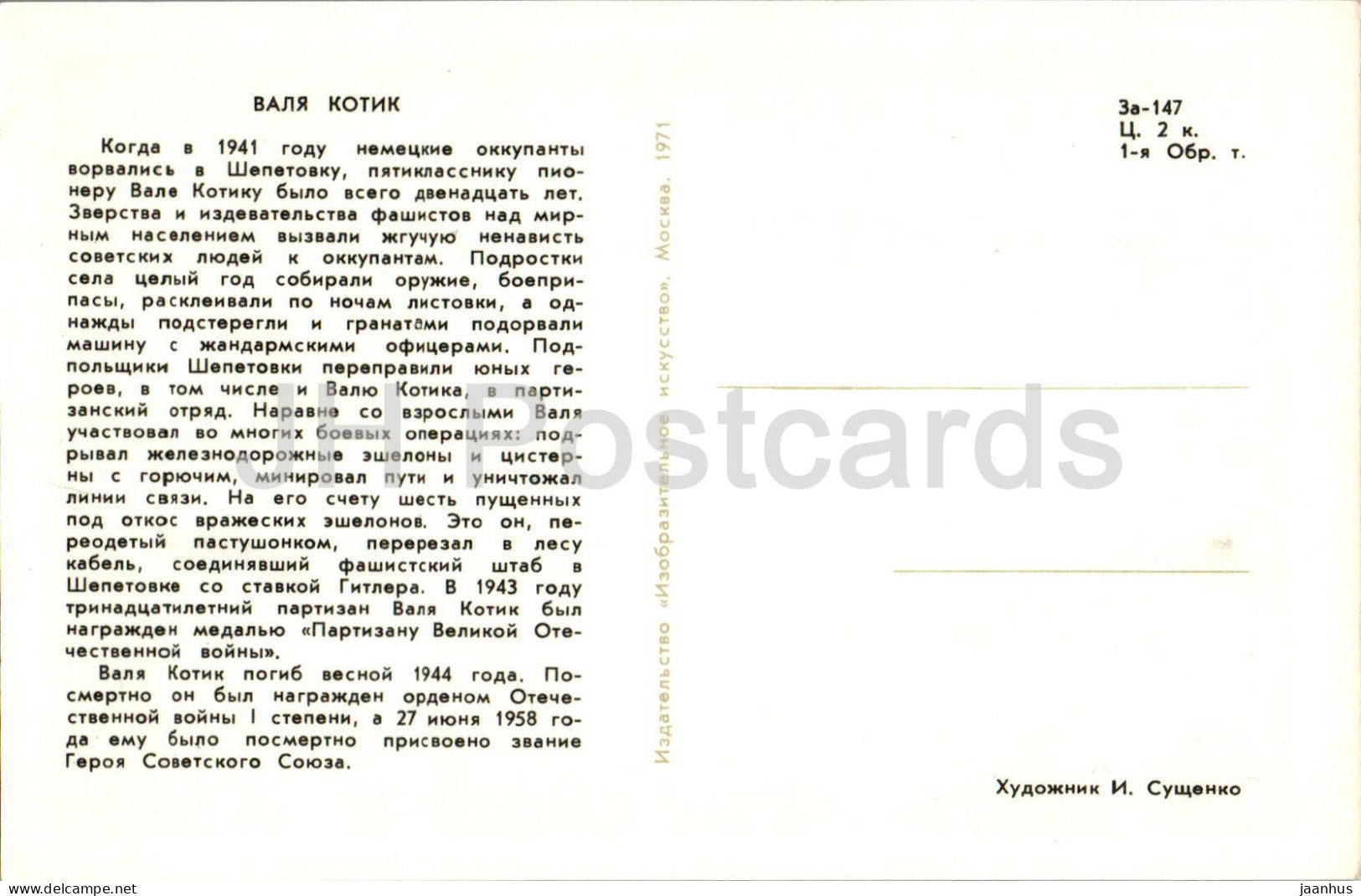 Pioneers Heroes - Valya Kotik - boy - machine gun - illustration by I. Suschenko - 1971 - Russia USSR - unused