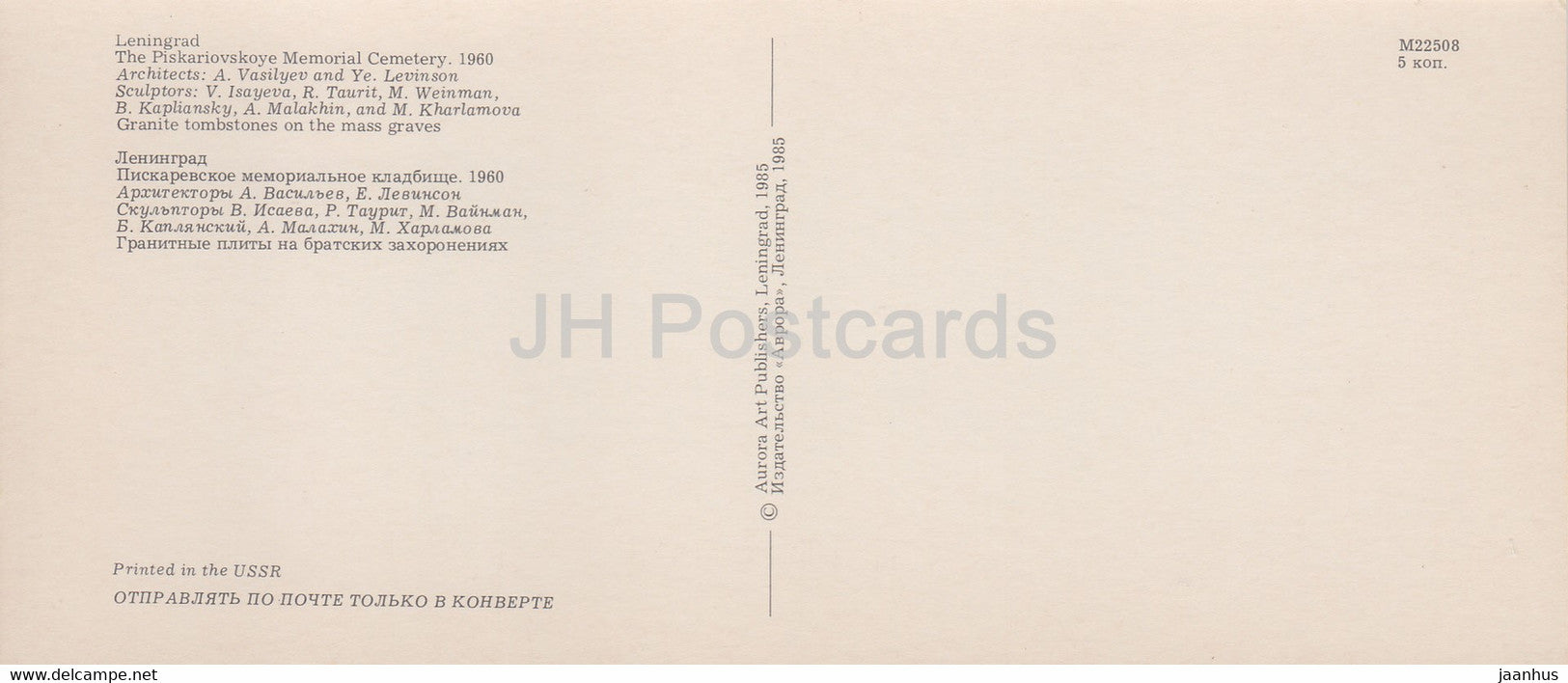 Piskaryovskoye Memorial Cemetery - Granite Tombstones on the mass graves - 1985 - Russia USSR - unused