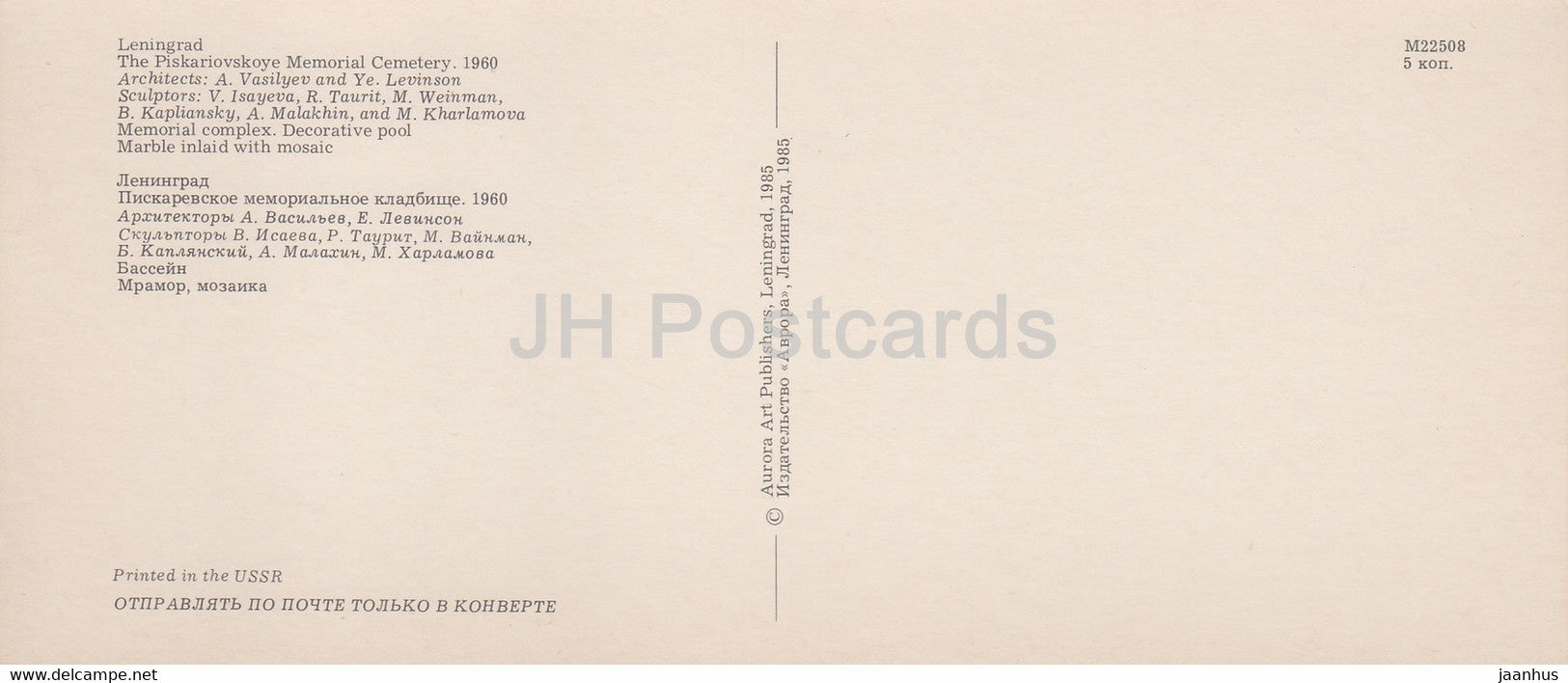 Piskaryovskoye Memorial Cemetery - Memorial Complex - Decorative Pool - 1985 - Russia USSR - unused